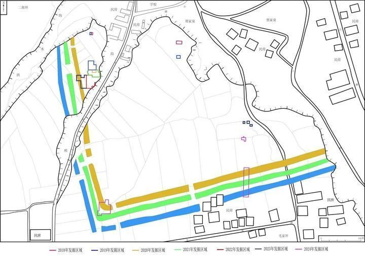 图为甘肃省定西市临洮县寺洼遗址历年发掘区及“围壕(沟)”分布图。(甘肃省文物考古研究所供图)